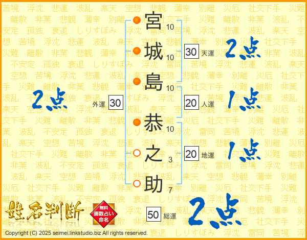宮城島恭之助さんの天運は30画の2点!