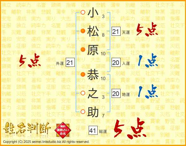 小(3画)松(8画)原(10画) 恭(10画)之(3画)助(7画)