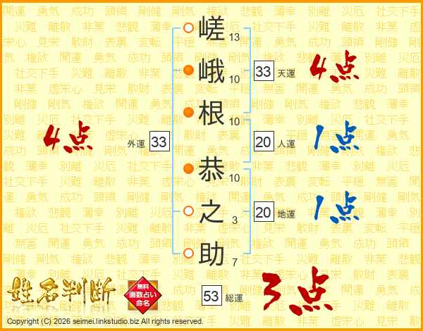 嵯峨根恭之助さんの外運は33画の4点!