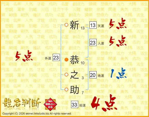 新恭之助さんの総運は33画の4点!