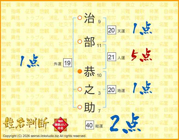 治(9画)部(11画) 恭(10画)之(3画)助(7画)