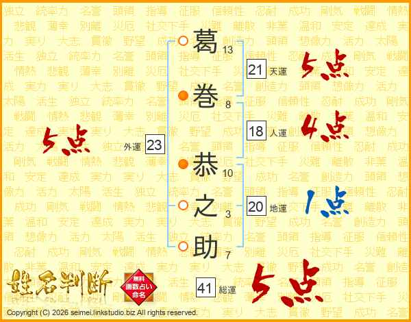 葛(13画)巻(8画) 恭(10画)之(3画)助(7画)