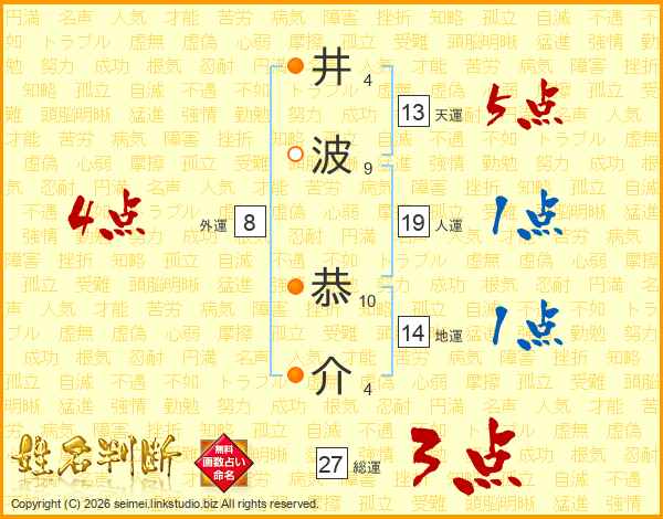 井(4画)波(9画) 恭(10画)介(4画)