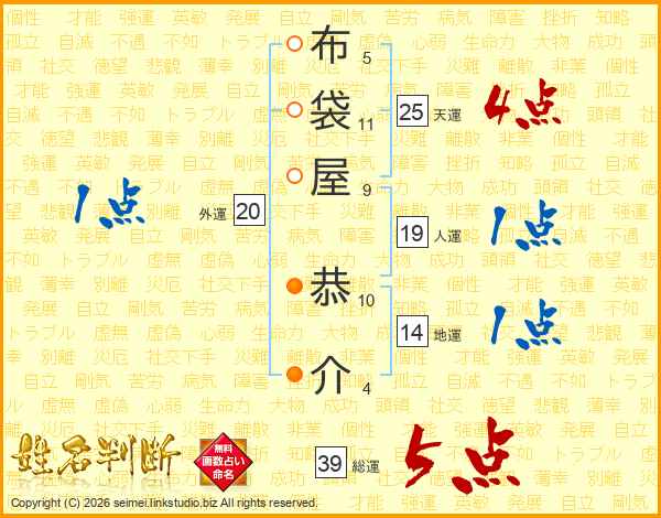 布袋屋恭介さんの総運は39画の5点!