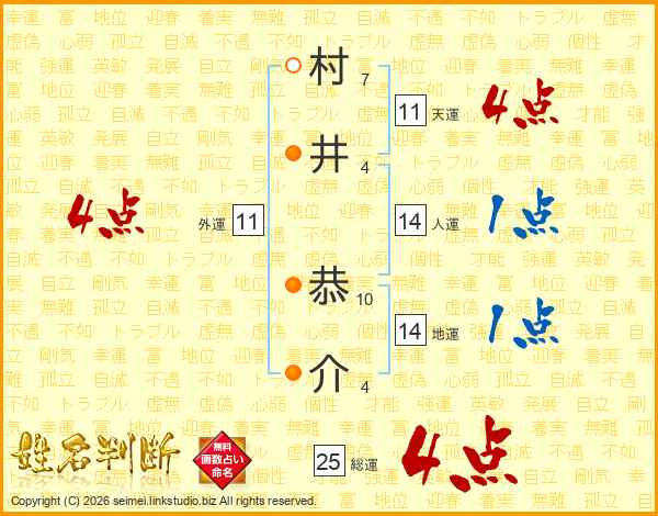 村井恭介さんの天運は11画の4点!