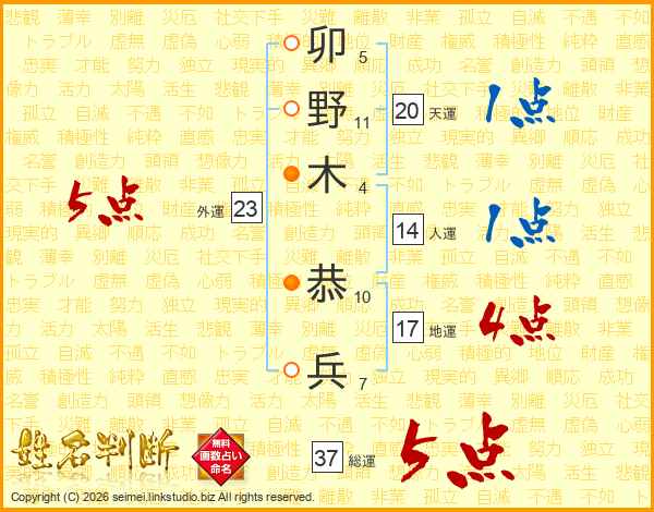 卯野木恭兵さんの総運は37画の5点!