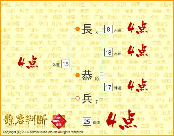 長恭兵さんの総運は25画の4点!