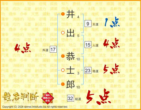 井出恭士郎さんの総運は32画の5点!