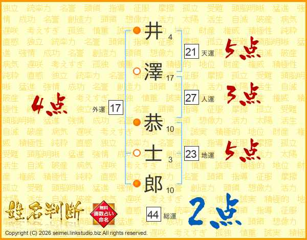 井(4画)澤(17画) 恭(10画)士(3画)郎(10画)