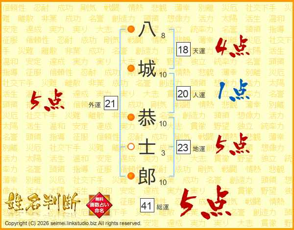 八城恭士郎さんの総運は41画の5点!