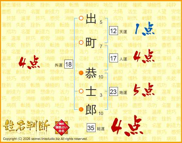 出町恭士郎さんの総運は35画の4点!