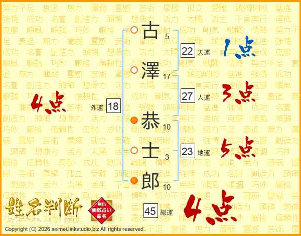 古澤恭士郎さんの総運は45画の4点!