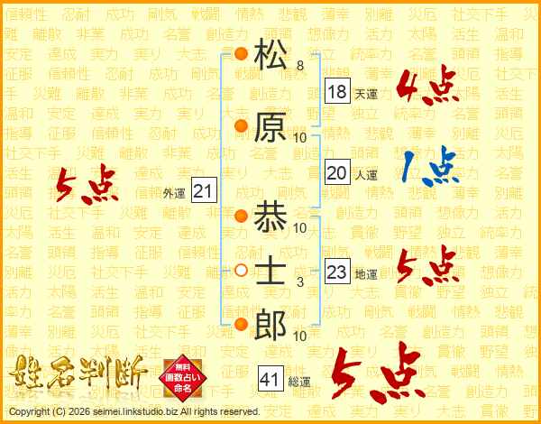 松(8画)原(10画) 恭(10画)士(3画)郎(10画)