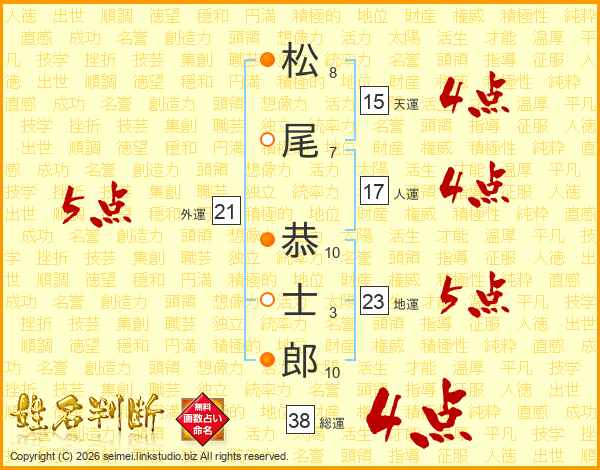 松尾恭士郎さんの総運は38画の4点!