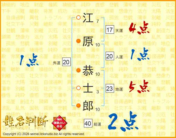江原恭士郎さんの総運は40画の2点!