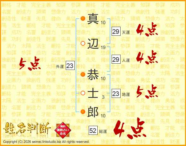 真(10画)辺(19画) 恭(10画)士(3画)郎(10画)