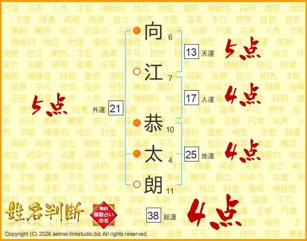 向江恭太朗さんの総運は38画の4点!