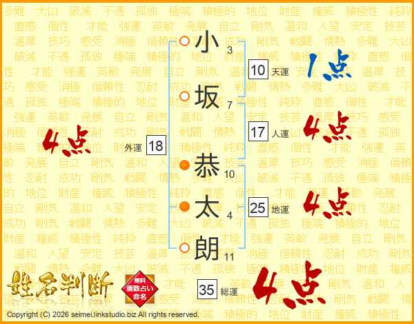 小坂恭太朗さんの総運は35画の4点!