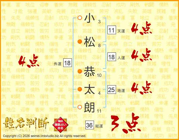 小松恭太朗さんの天運は11画の4点!