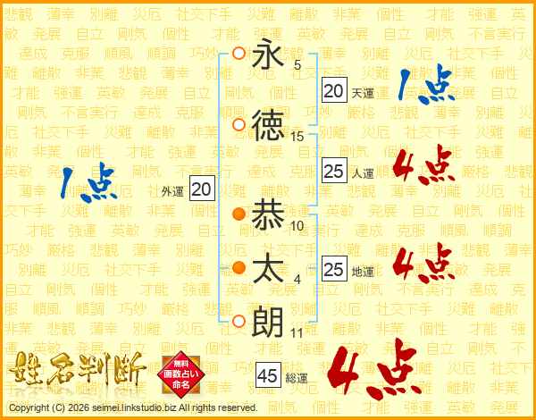 永徳恭太朗さんの総運は45画の4点!