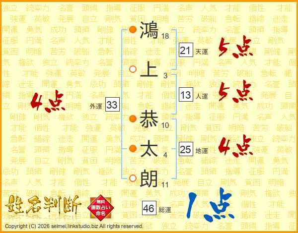 鴻上恭太朗さんの外運は33画の4点!