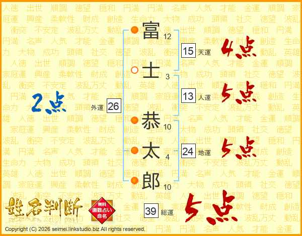 富士恭太郎さんの総運は39画の5点!
