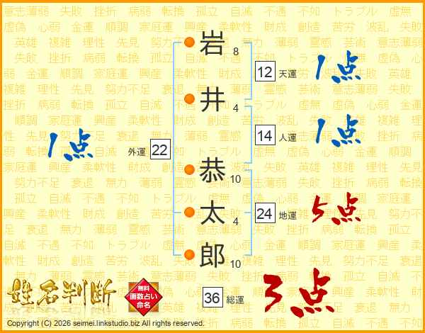 岩(8画)井(4画) 恭(10画)太(4画)郎(10画)