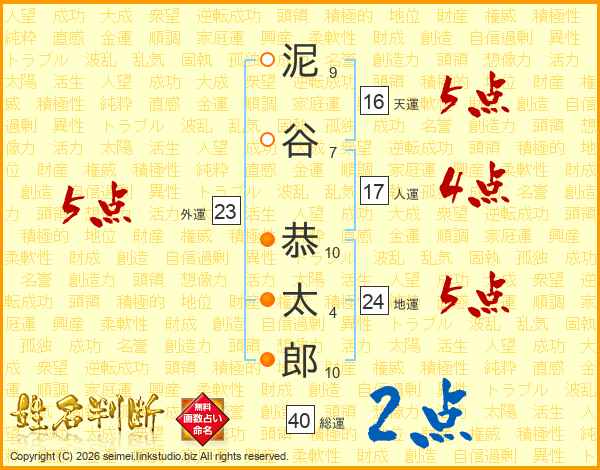 泥谷恭太郎さんの総運は40画の2点!
