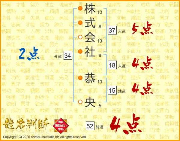 株式会社恭央さんの天運は37画の5点!