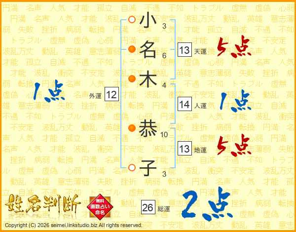 小(3画)名(6画)木(4画) 恭(10画)子(3画)