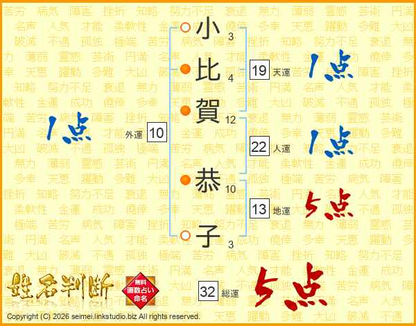 小比賀恭子さんの総運は32画の5点!