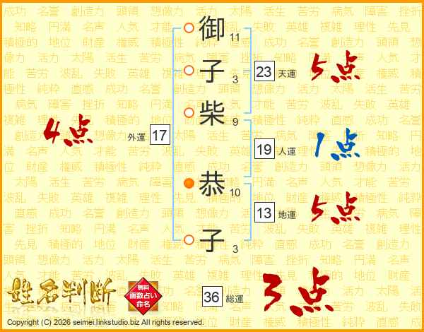 御子柴恭子さんの総運は36画の3点!