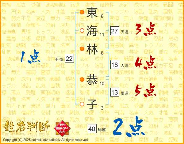東海林恭子さんの総運は40画の2点!