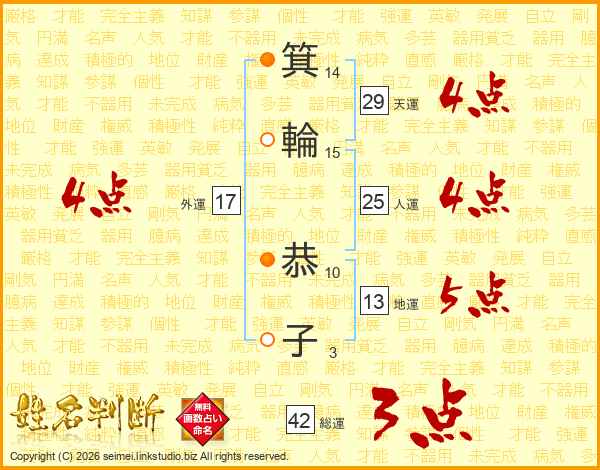 箕(14画)輪(15画) 恭(10画)子(3画)