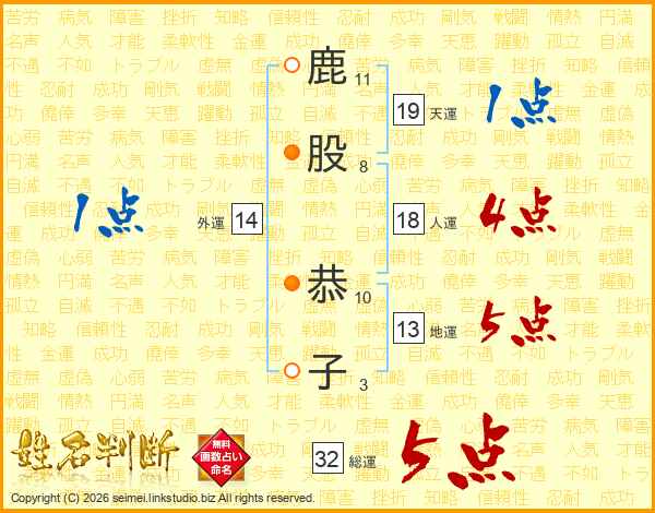 鹿股恭子さんの総運は32画の5点!