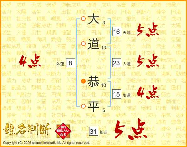 大道恭平さんの総運は31画の5点!