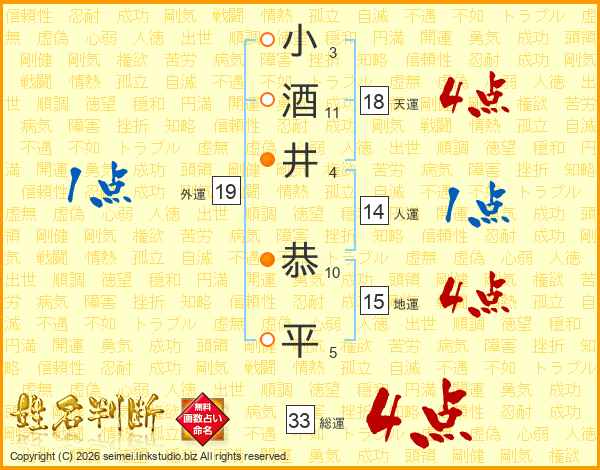 小酒井恭平さんの総運は33画の4点!