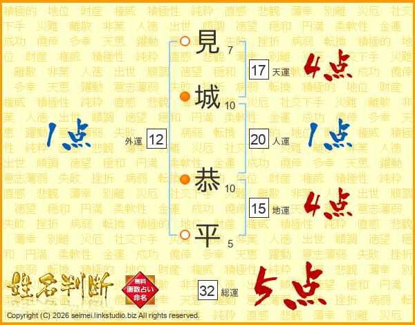 見城恭平さんの総運は32画の5点!