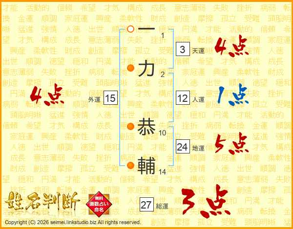 一力恭輔さんの総運は27画の3点!