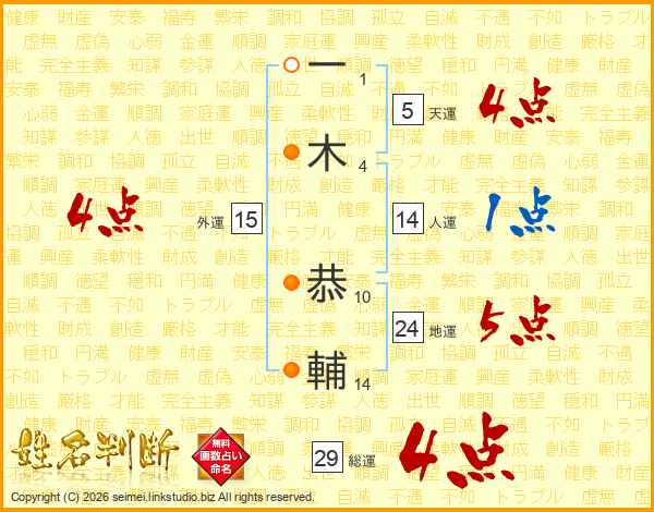 一(1画)木(4画) 恭(10画)輔(14画)