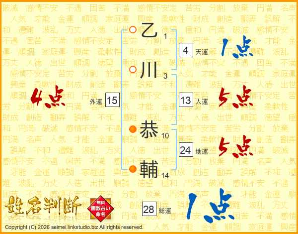 乙川恭輔さんの総運は28画の1点!