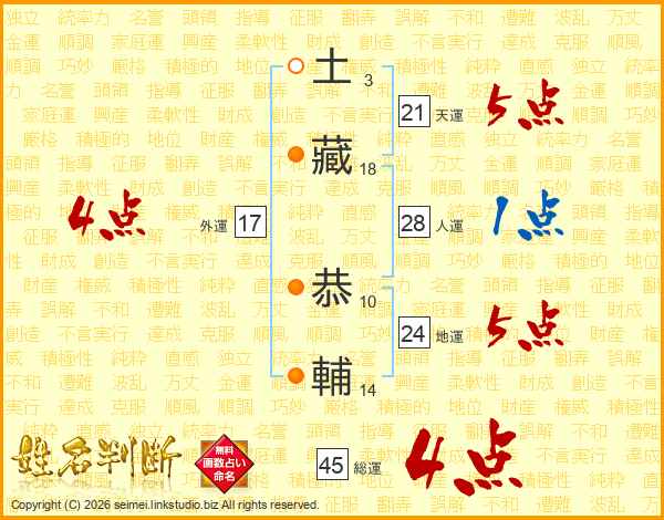土藏恭輔さんの総運は45画の4点!