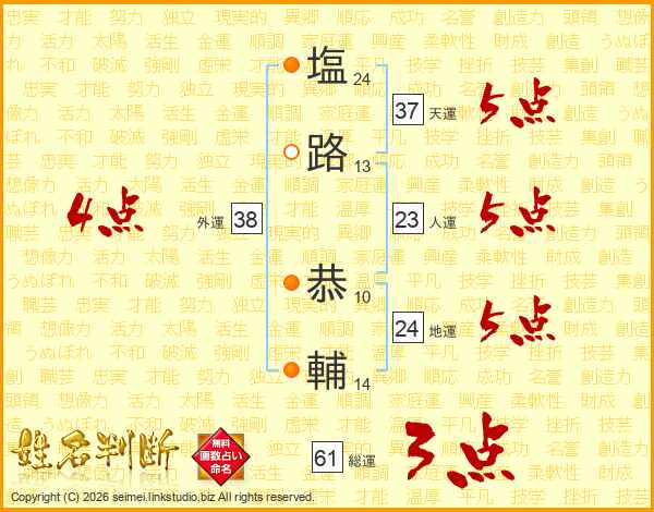 塩(24画)路(13画) 恭(10画)輔(14画)