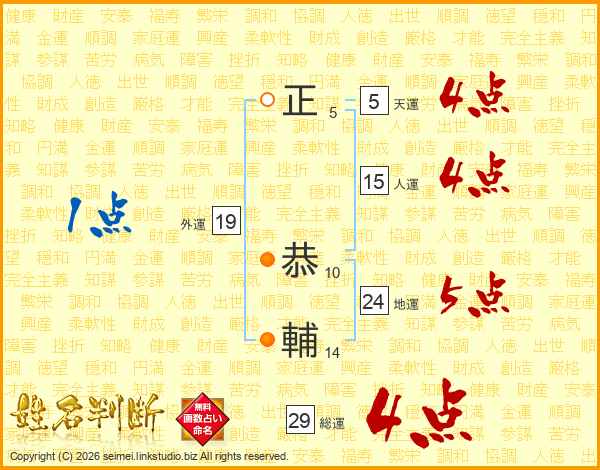 正恭輔さんの総運は29画の4点!
