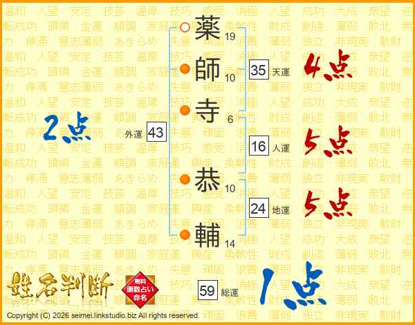 薬師寺恭輔さんの総運は59画の1点!
