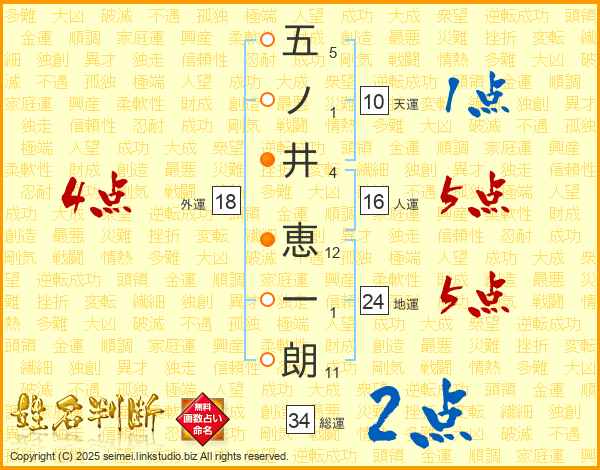 五ノ井恵一朗さんの総運は34画の2点!