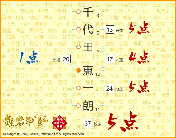 千代田恵一朗さんの総運は37画の5点!
