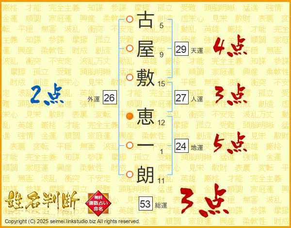 古屋敷恵一朗さんの総運は53画の3点!