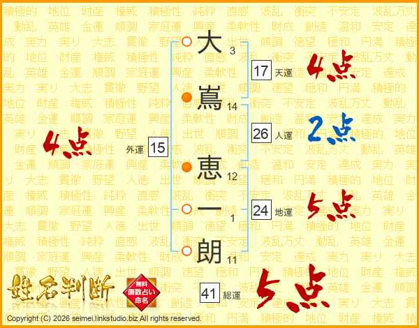 大嶌恵一朗さんの総運は41画の5点!