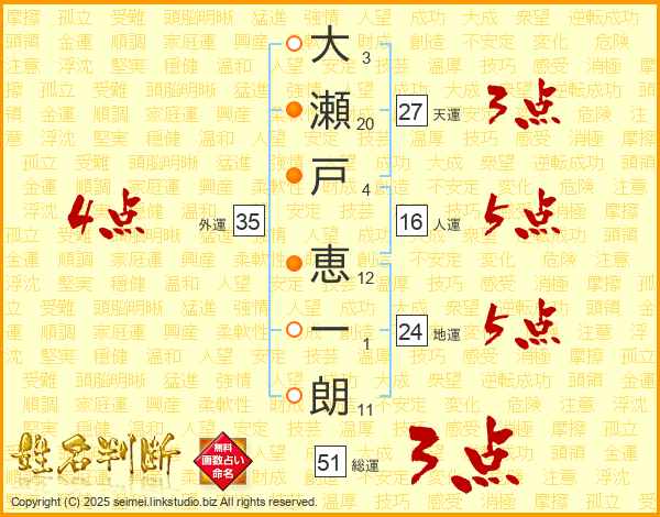 大瀬戸恵一朗さんの総運は51画の3点!